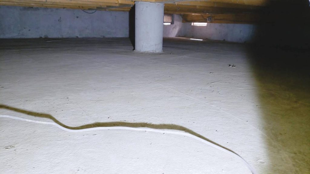 コンクリート基礎の場合にはこの後に洗浄、清掃、消毒作業をします。基礎が土や砂利の場合には泥をできる限り撤去した後に消毒いたします。