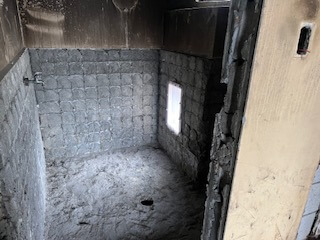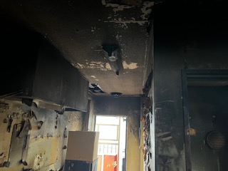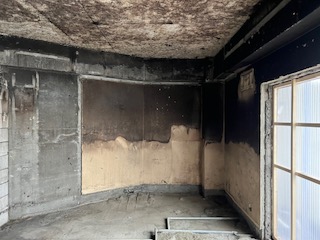 現場に到着しましたら、全室真っ黒で家財なども燃えて